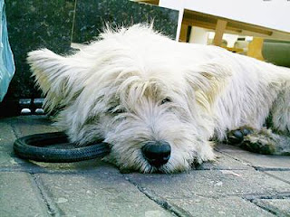 Westie Highland White Terrier nas ruas da zona leste. Fui visitar a protetora Cleonice encontrei esse pobre Westie abandonado, faminto, cansado, com a patinha sangrando cheia de bicheira.